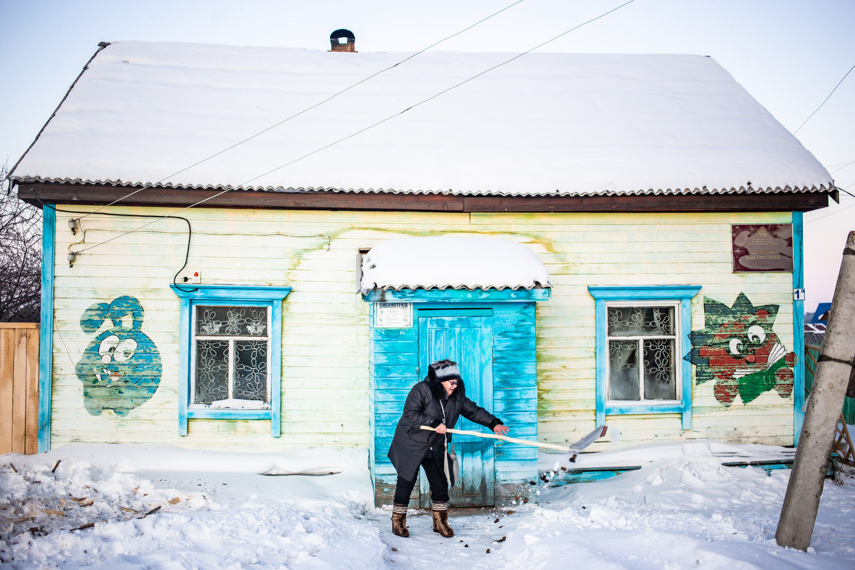 Библиотека построена в 1961 году из «топляка» — брёвен, которые раньше сплавляли прямо по воде. «Да это здание ещё нас переживёт, — говорит Наталья Николаевна. — Полы здесь из векового листвяка. Единственное, о чём мы мечтаем, — подремонтировать немного. Мечты, мечты, не знаешь, куда их деть. Банку краски не допросишься».