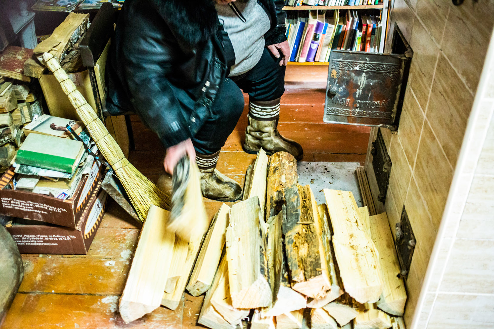 Зимой Наталья Николаевна ходит в библиотеке в пуховике, тёплой кофте, унтах и специальных «чирках» — носках, сшитых из мягкой овчины. Из такого же материала раньше шили шубы. Иногда по утрам в помещении температура опускается ниже нуля. Оставлять обогреватели на ночь — очень дорого и страшно, может случиться пожар. Дрова тоже нужно экономить. Машина дров стоит 11 тысяч рублей.