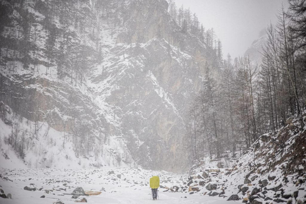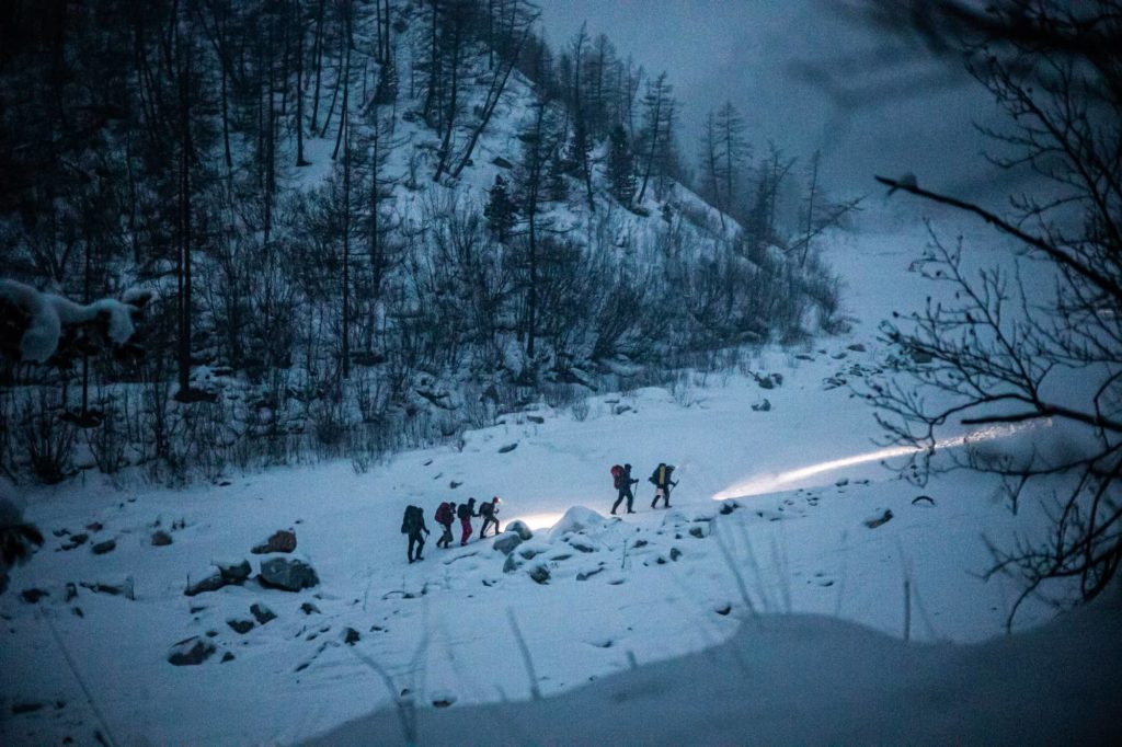 В мае поднимаются по замёрзшей реке Белый Иркут. Лёд ещё крепкий и не так холодно, как зимой. Идти комфортно. Это ещё одна причина, по которой маршрут стал таким популярным