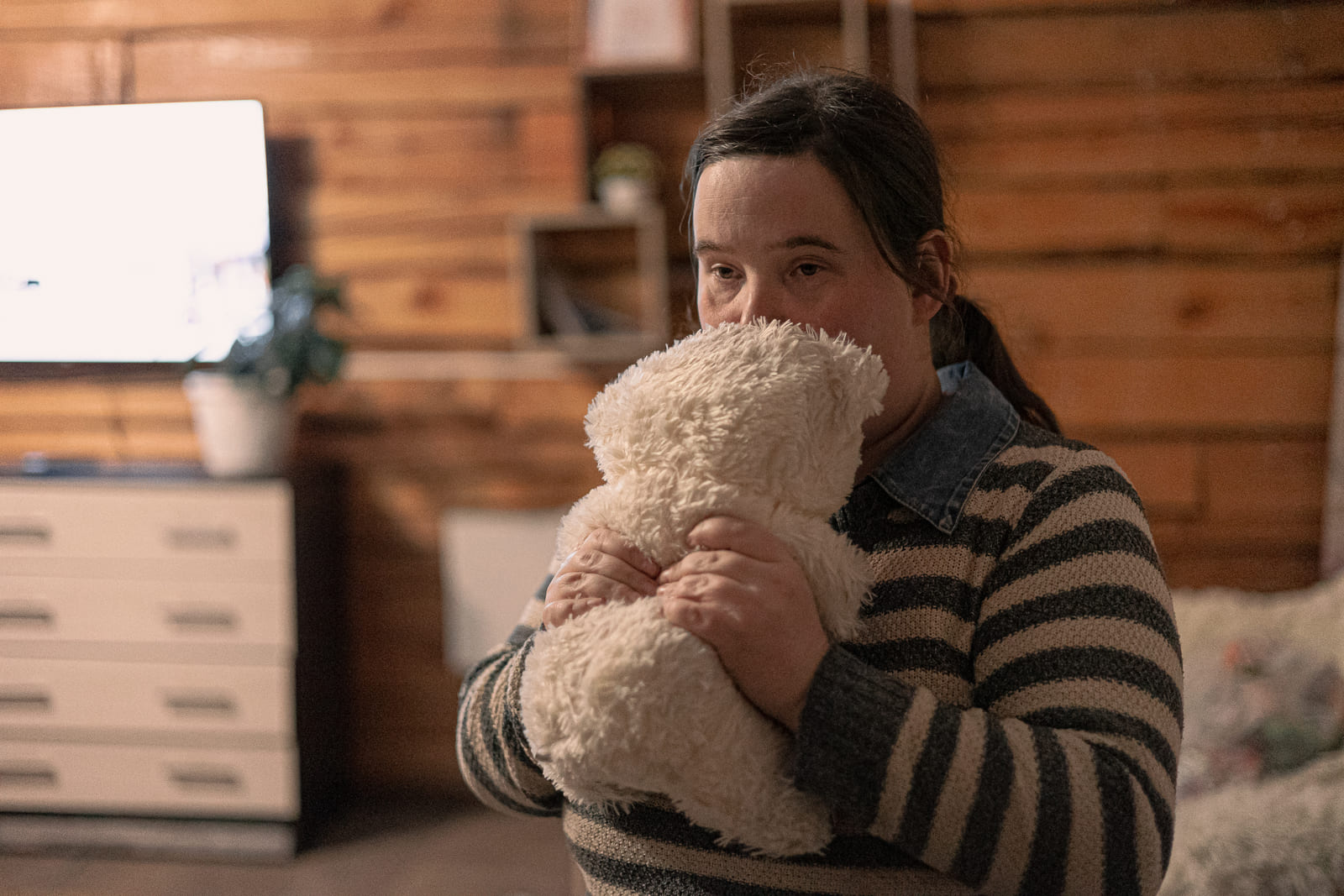 Ольга не может ходить с рождения. Каждое утро Никита пересаживает её с кровати на коляску. Вечером — обратно. Виноградов помогает девушке ходить в туалет. Опекун купила для Дубининой специальное ведро, оно стоит за шторкой.