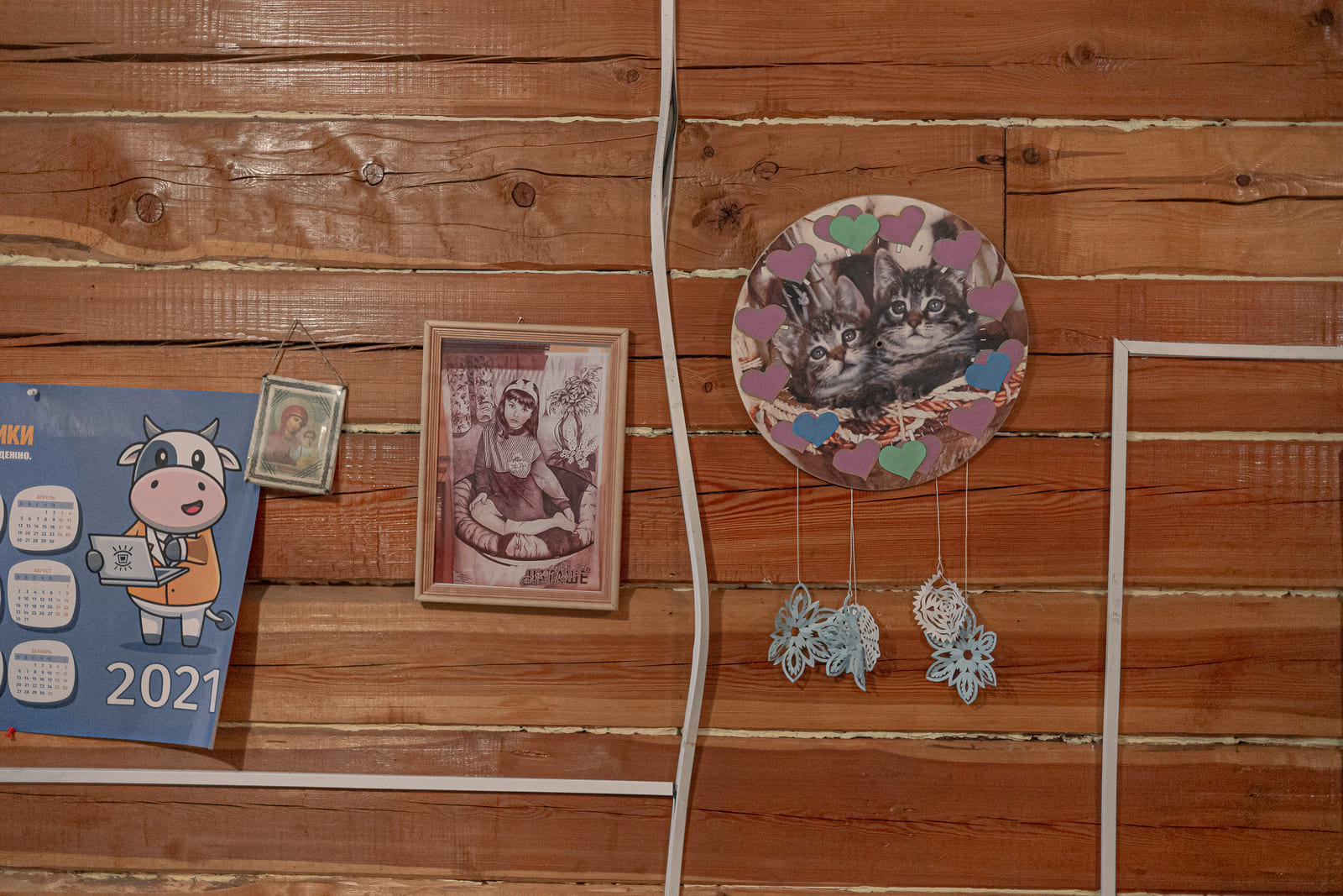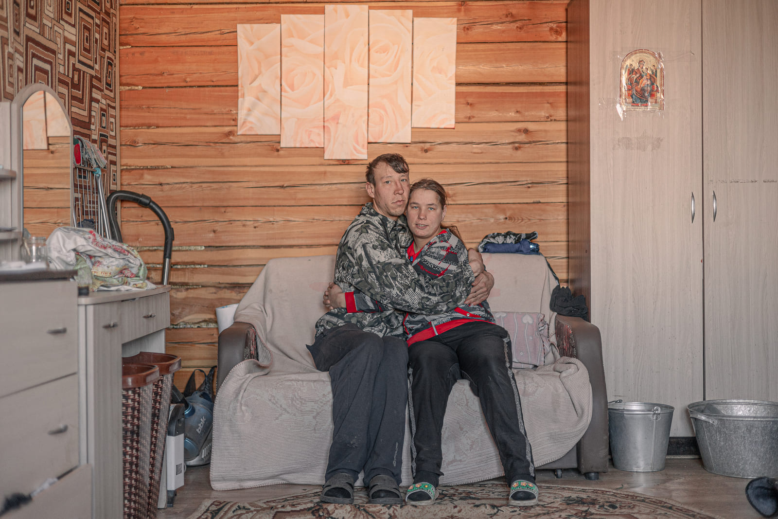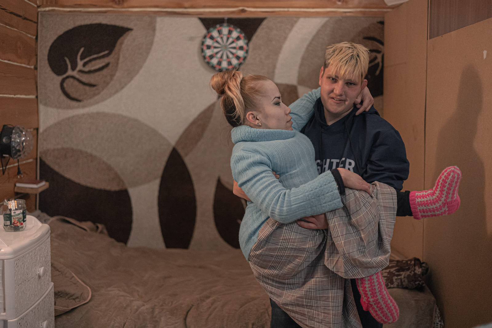 Ольга и Никита — показательная пара, у которой часто берут интервью журналисты. У них — единственных — двуспальная кровать в квартире. Рядом с кроватью висит фотография двух котят. Она обрамлена бумажными сердечками.