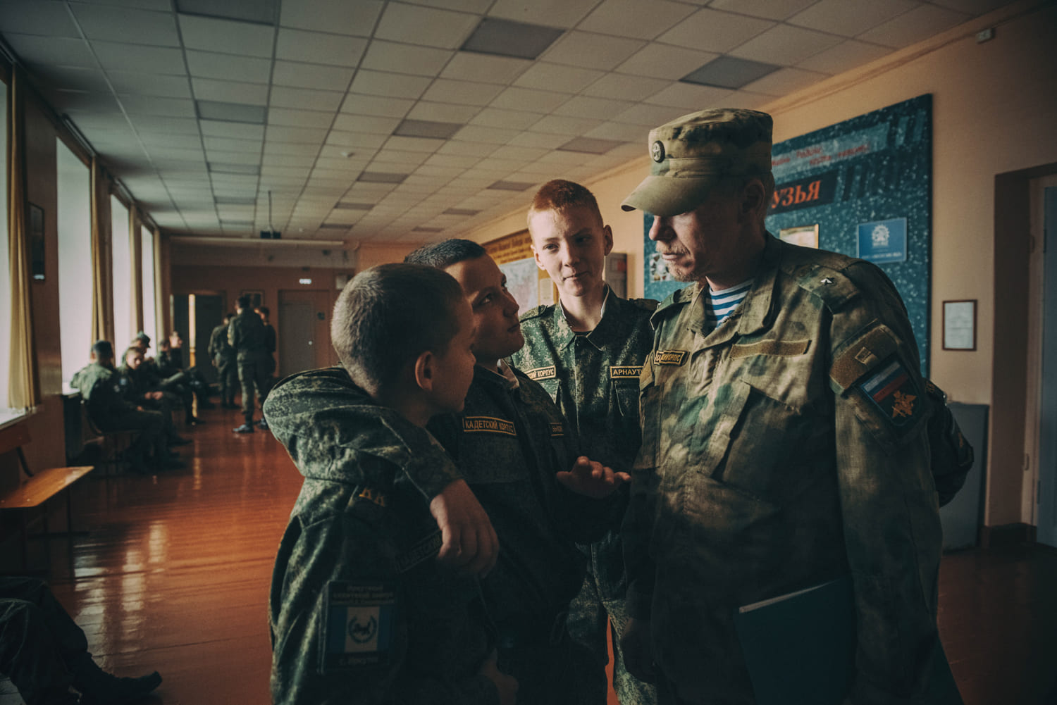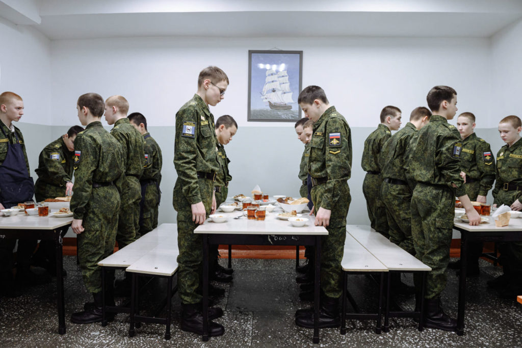 Политинформация проводилась в корпусе всегда: каждые вторник и четверг офицеры-воспитатели проводили информационный час до начала уроков. В последний месяц программа по патриотическому воспитанию кадет усилилась. Так рекомендовали в Министерстве образования. «Сейчас мы эту работу усиливаем, ввели специальные классы и часы. Делаем разъяснительные работы на уроках истории и обществознания — для всего корпуса и по классам, — рассказывает заместитель директора кадетского корпуса по воспитательной работе Гордеева. — Мы разъясняем, что Россия не агрессор. Что сейчас сложилась необходимая политическая обстановка, что мы на правильном пути и боремся с фашизмом». Других источников информации у кадет нет.