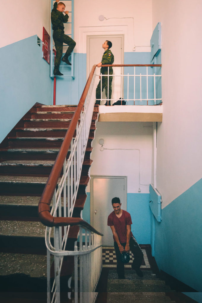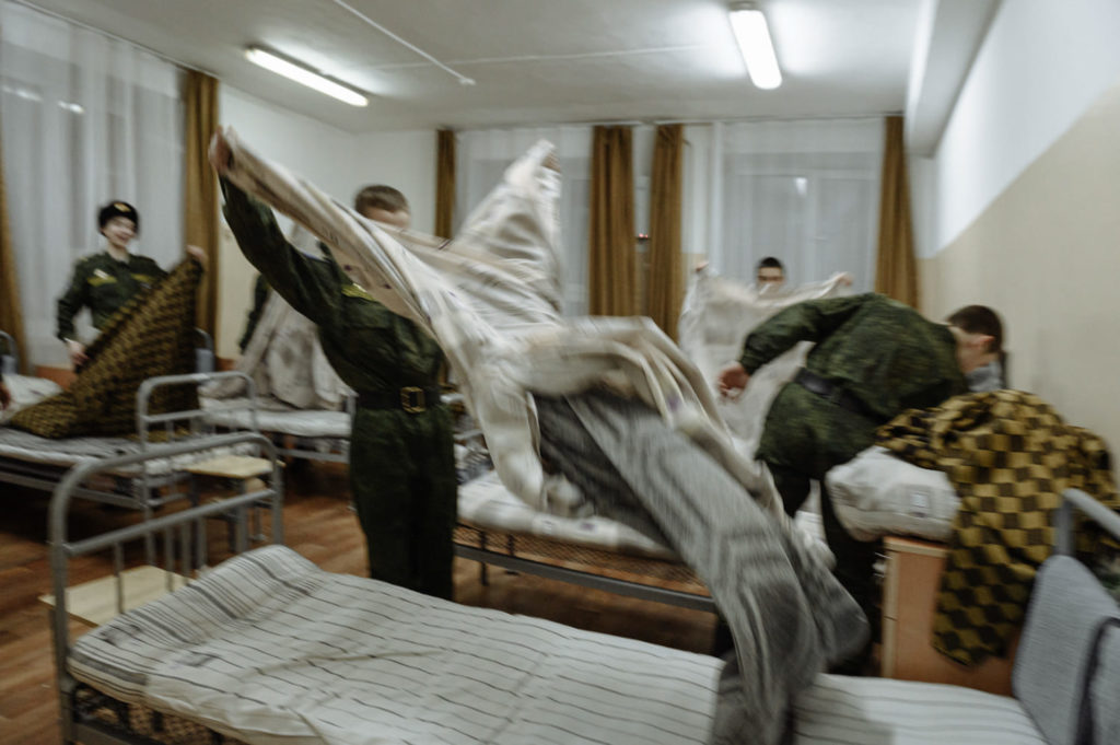 Перчатки и воротнички у кадета всегда должны быть чистыми. Каждый вечер кадеты отпарывают и стирают старые воротнички, а на их место пришивают свежие. Диденко вспоминает, как удивилась, когда кадеты-второкурсники наперебой рассказывали ей, как правильно завязать узелок и какой длины должна быть нитка. «До этого мне сложно было представить, что семиклассник, тем более мальчик, может так ухаживать за вещами», — говорит она.