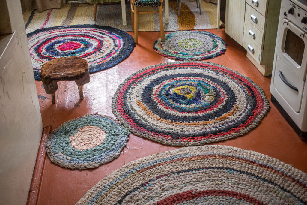 В доме у 100-летнего ветерана войны из Горячинска. Когда хозяин дома покупал новый ковёр, он вешал его на старый. В итоге получилось такое наслоение ковров.