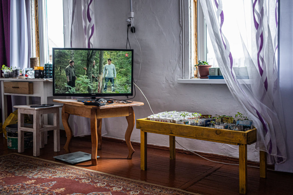 Раньше икона была окном к Богу, а сейчас её место занял телевизор. Ему люди в деревне отдают много энергии, «молятся» на него.