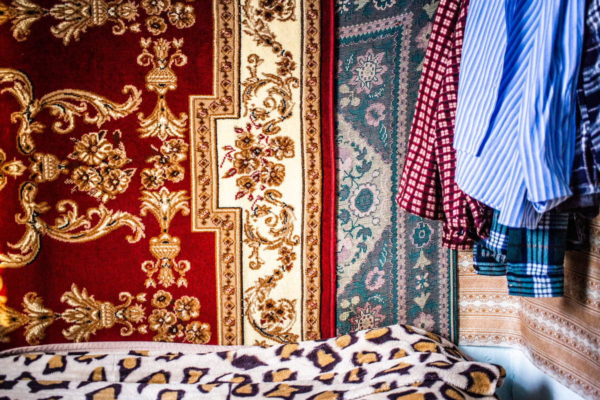 В доме у 100-летнего ветерана войны из Горячинска. Когда хозяин дома покупал новый ковёр, он вешал его на старый. В итоге получилось такое наслоение ковров.