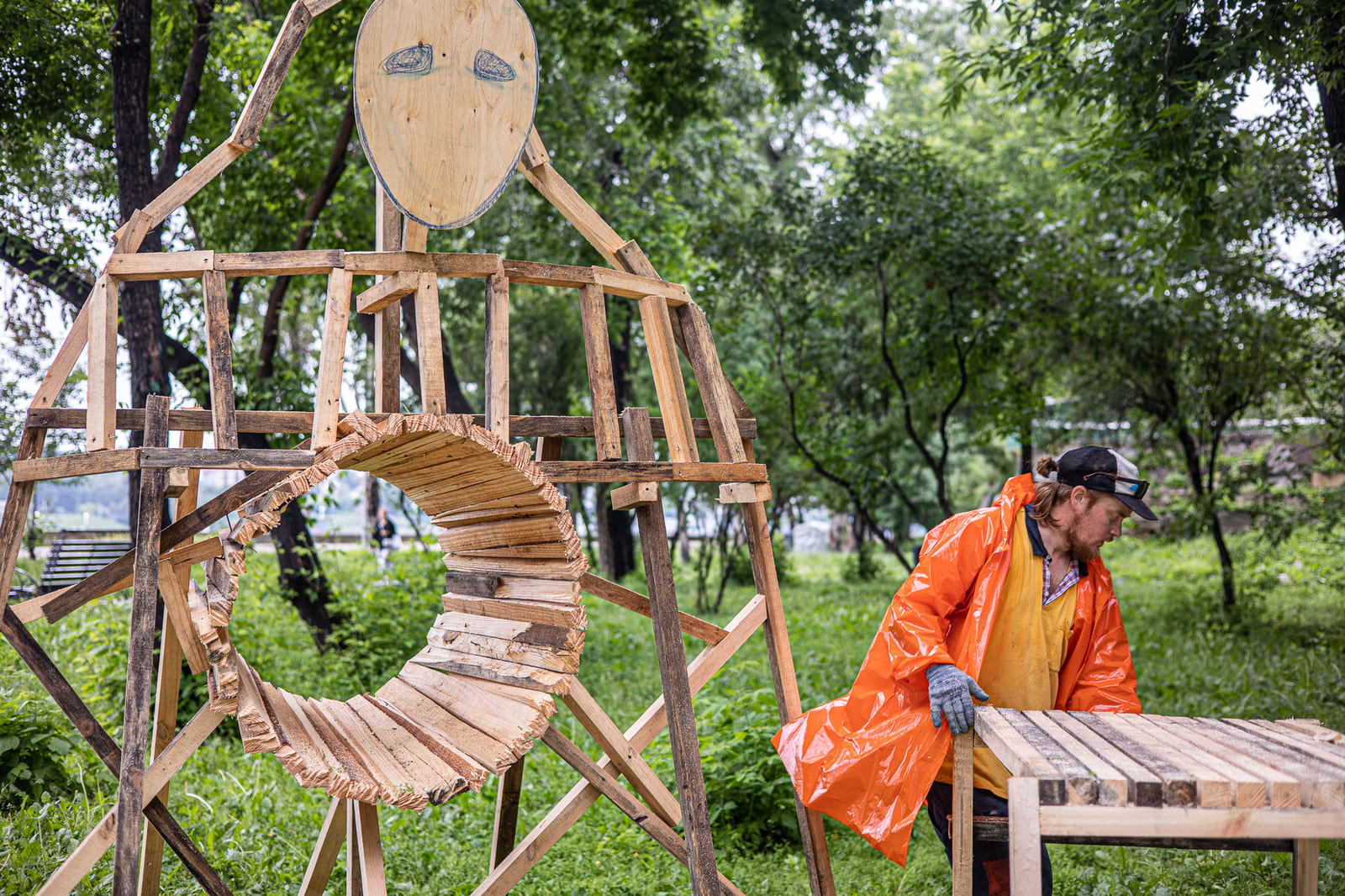 Кроме того, на фестивале есть скульптуры слонёнка, бабочки, медитирующего зайца и кита, который выныривает из земли. Их можно увидеть до конца августа.