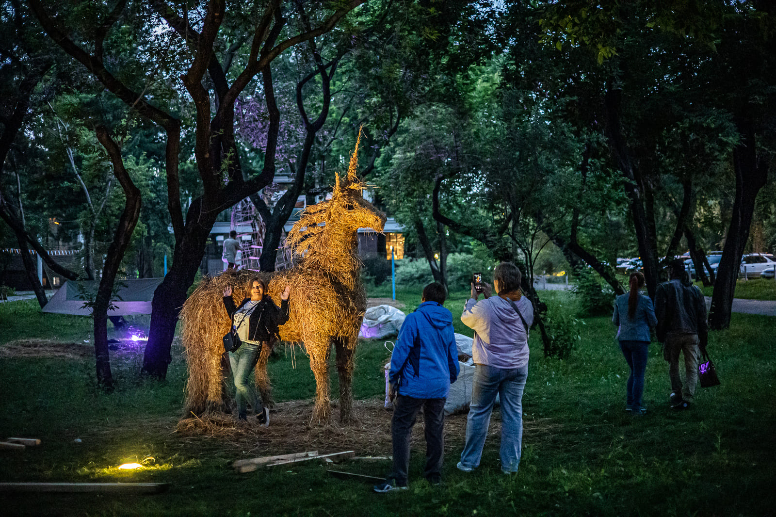 На бульваре Гагарина проходит фестиваль арт-объектов из соломы «Энергия лета». С первого по восьмое июля их создавали скульпторы из разных регионов страны. Образы для персонажей изначально генерировала нейросеть Midjourney. Скульптор вводил запрос, какой он видит свою работу, а сеть предлагала ему варианты. Одни с ними соглашались, другие всё переделывали.
