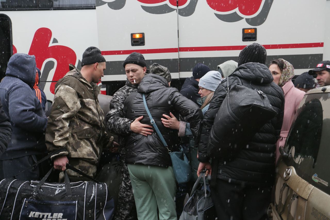 Отправка мобилизованных из Улан-Удэ. Крайний справа — Сергей из Еравнинского района. Ему 49 лет, дома остались жена и две дочери. «Я думаю, что наша страна или Бурятия задавят эту Китай. Ой, или Украину», — сказал Сергей журналистке ЛБ. Другой мобилизованный поделился: «Мне 45 лет, я служил тыщу лет назад, ни в какие горячие точки не ездил. Ну ладно, постреляем».