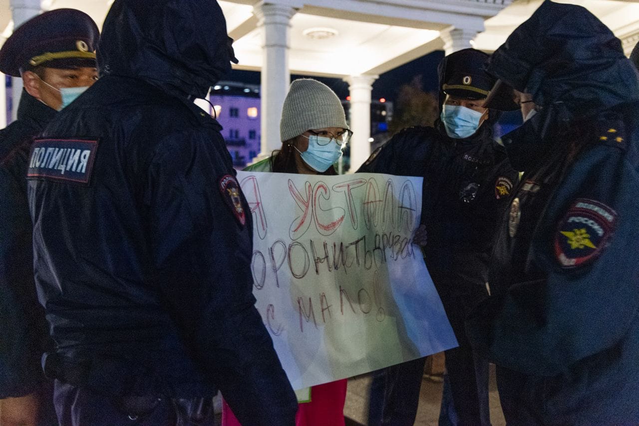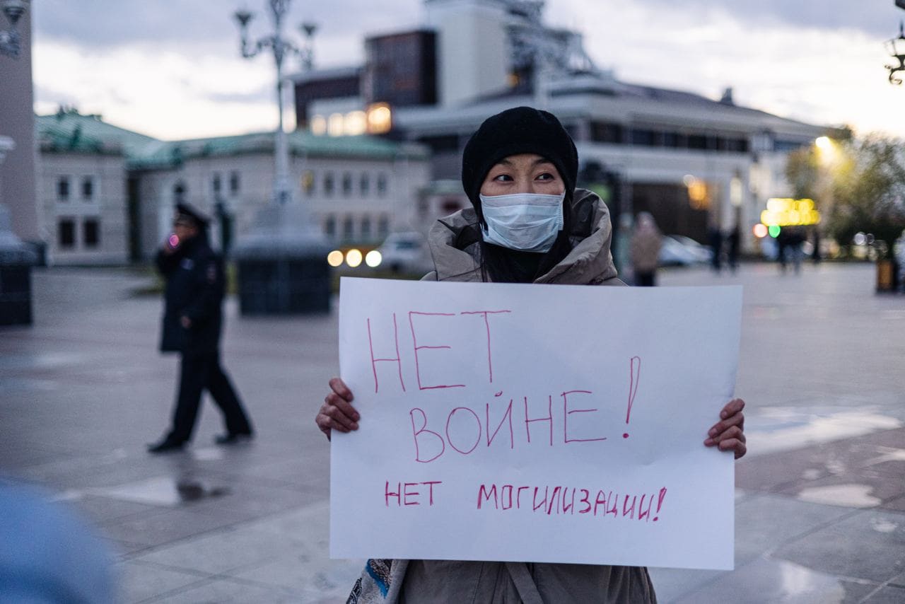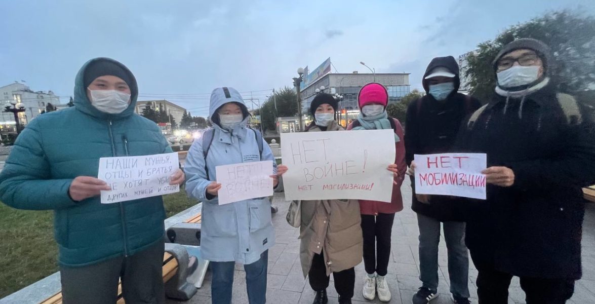 Жительница Улан-Удэ Арюна (имя изменено — ЛБ) вышла на одиночный пикет с плакатом: «Наши мужья, отцы, и братья не хотят убивать других мужей и отцов». У её мужа военно-учётная специальность «танкист». В семье двое детей. Арюну пытались задержать полицейские. На следующий после пикета день она с семьёй уехала из России.