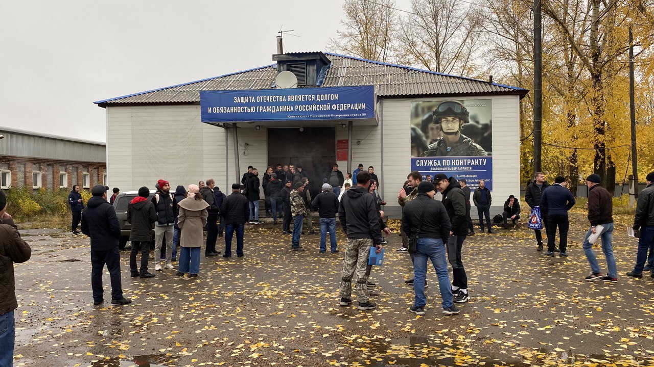 Рано утром мобилизованные из Иркутского района собрались у военкомата в посёлке Дзержинск. Некоторым из них повестки принесли домой, другим позвонили из сельсовета и сказали явиться за повесткой, кому-то её вручили на работе. «Очково, страшно, а что сделаешь? — говорил корреспонденту IRCITY один из мужчин. — И если мы туда не поедем, то они сюда придут». Женщины плакали. 24 сентября 2022 года.