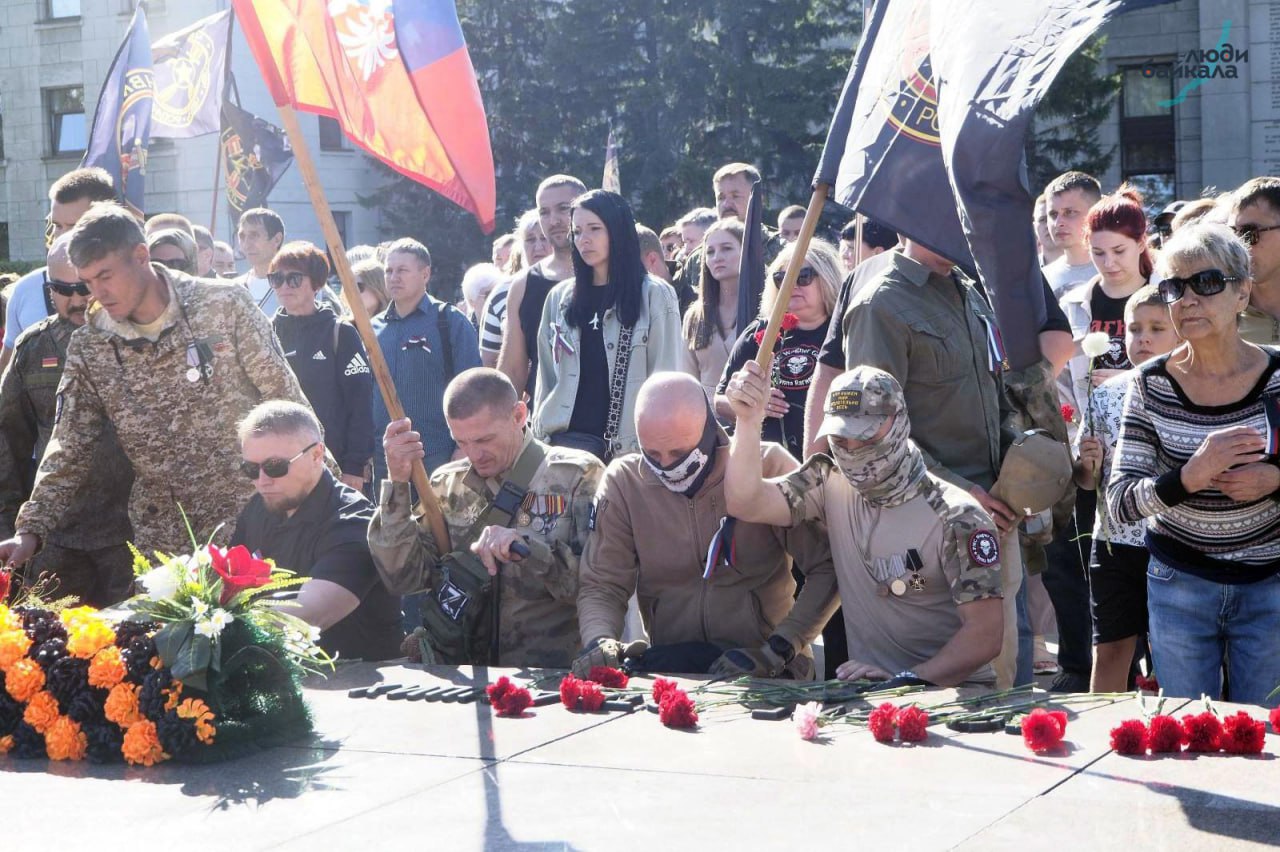 После митинга толпа в три с лишним десятка человек двинулась к «Вечному огню», потом начался автопробег — на своих машинах в сопровождении полицейских все желающие поехали на Александровское кладбище в 11 километрах от города. Там у трёхметровой чёрной стелы, похожей на обломанный зуб, выстроился почётный караул с оружием, рядом припарковали БТР, и собравшиеся горожане ещё раз прослушали речь про героев, которые «отдали жизнь за нас».