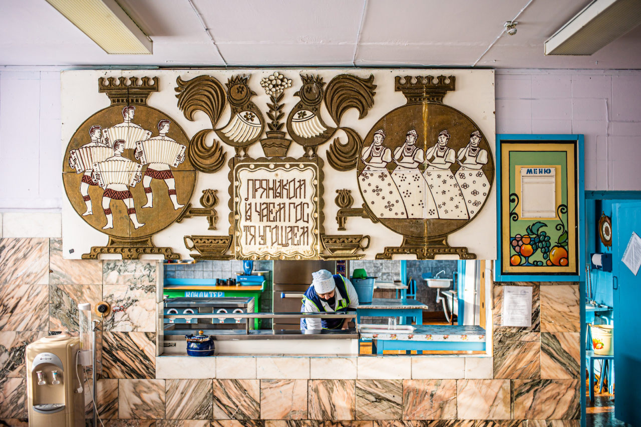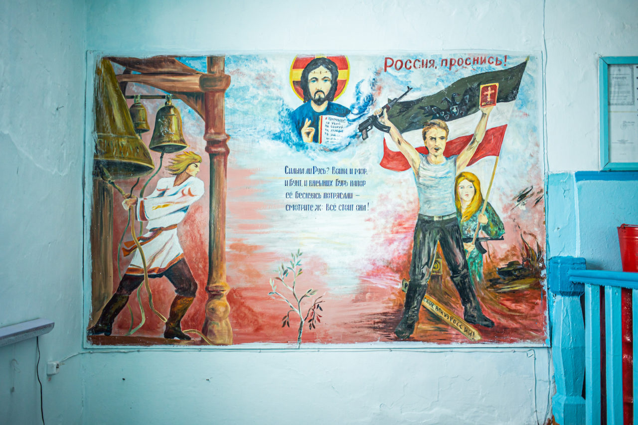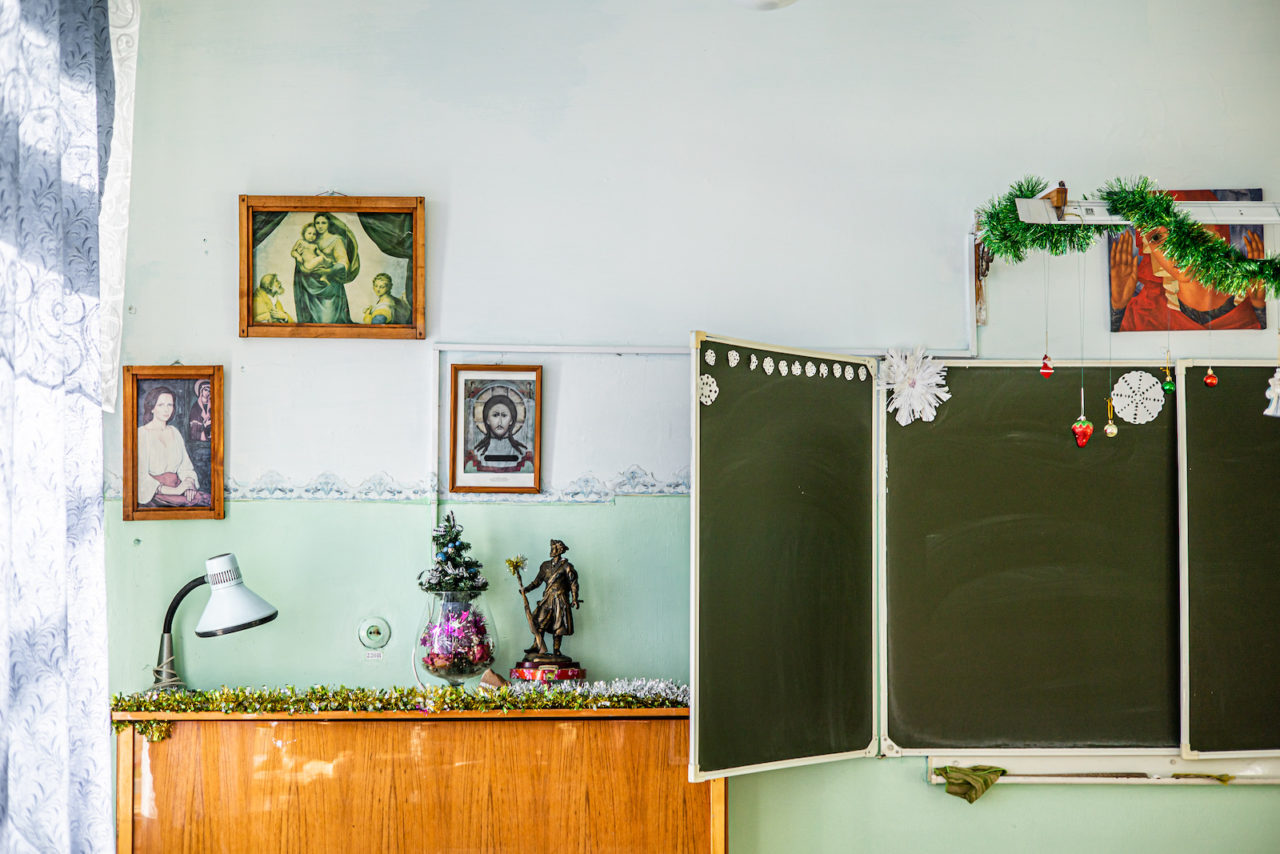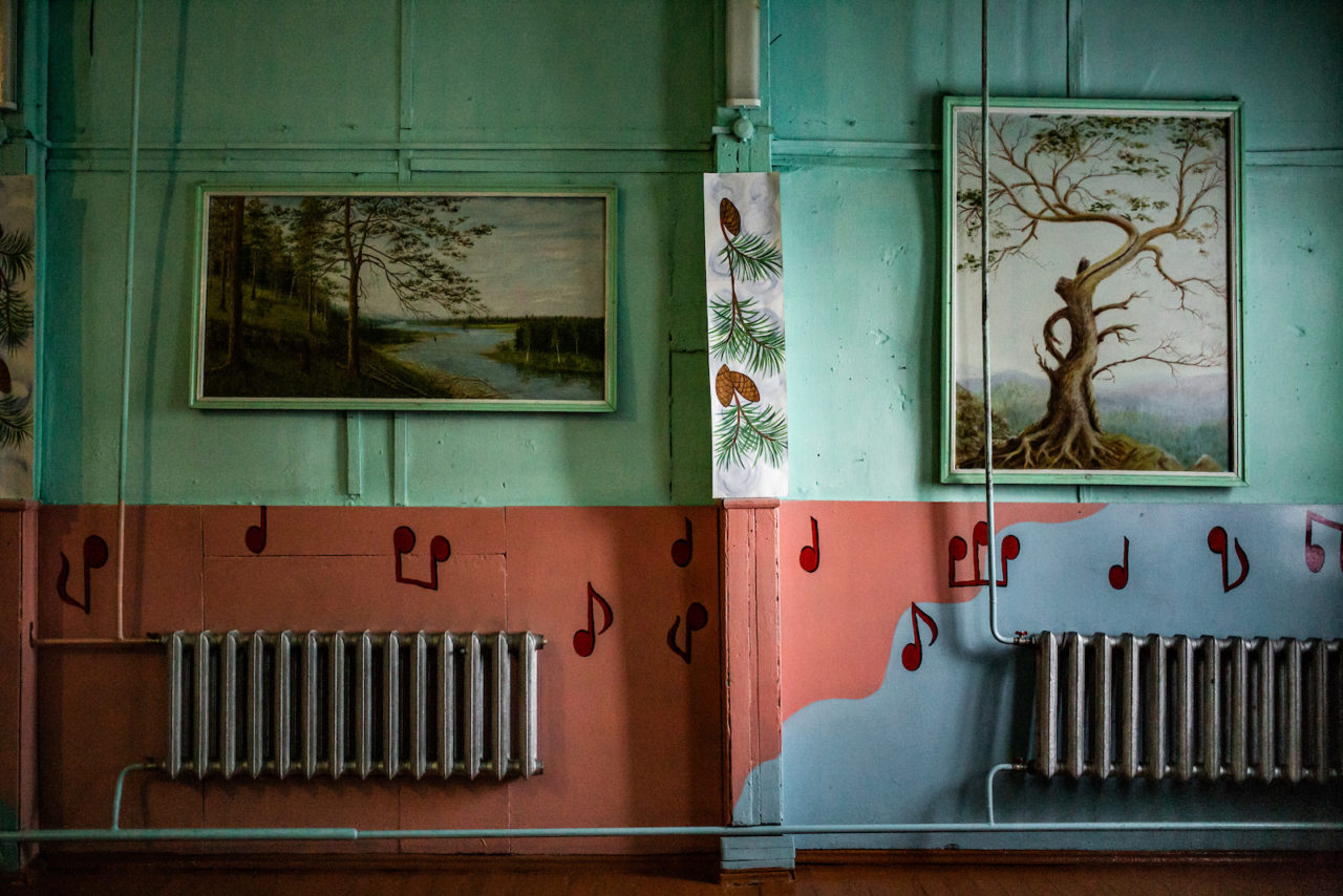 Чем дальше от крупного города и от надзора чиновников, тем больше уникального и самобытного появляется в школьных интерьерах. «Мне интересно находить эту самобытность, — говорит наш фотограф. — Это либо сохранившаяся советская самобытность, либо современная».