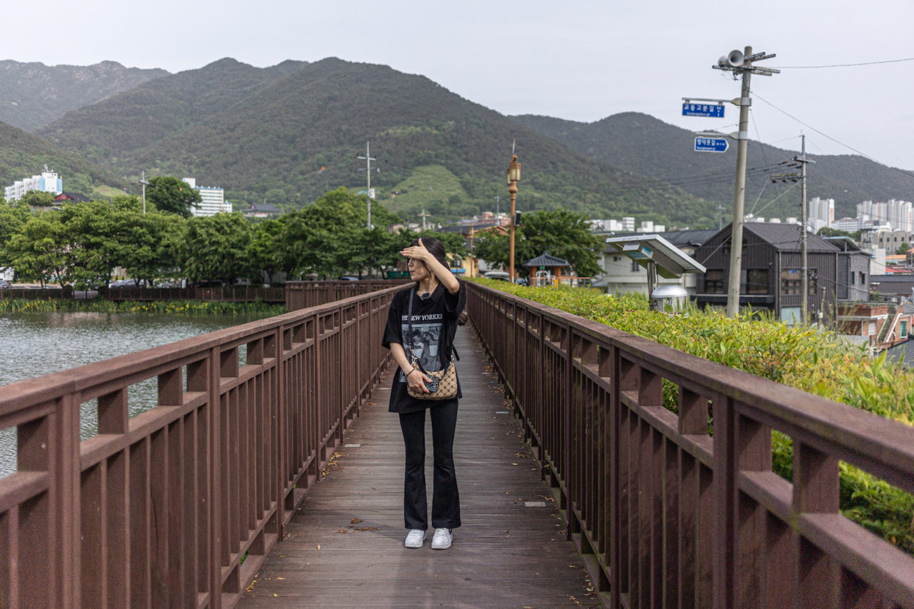 С развевающимися на ветру черными волосами, спортивной сумкой через плечо, в солнцезащитных очках на пол лица, модных джинсах с разрезами на бедрах ее не отличить от кореянки.