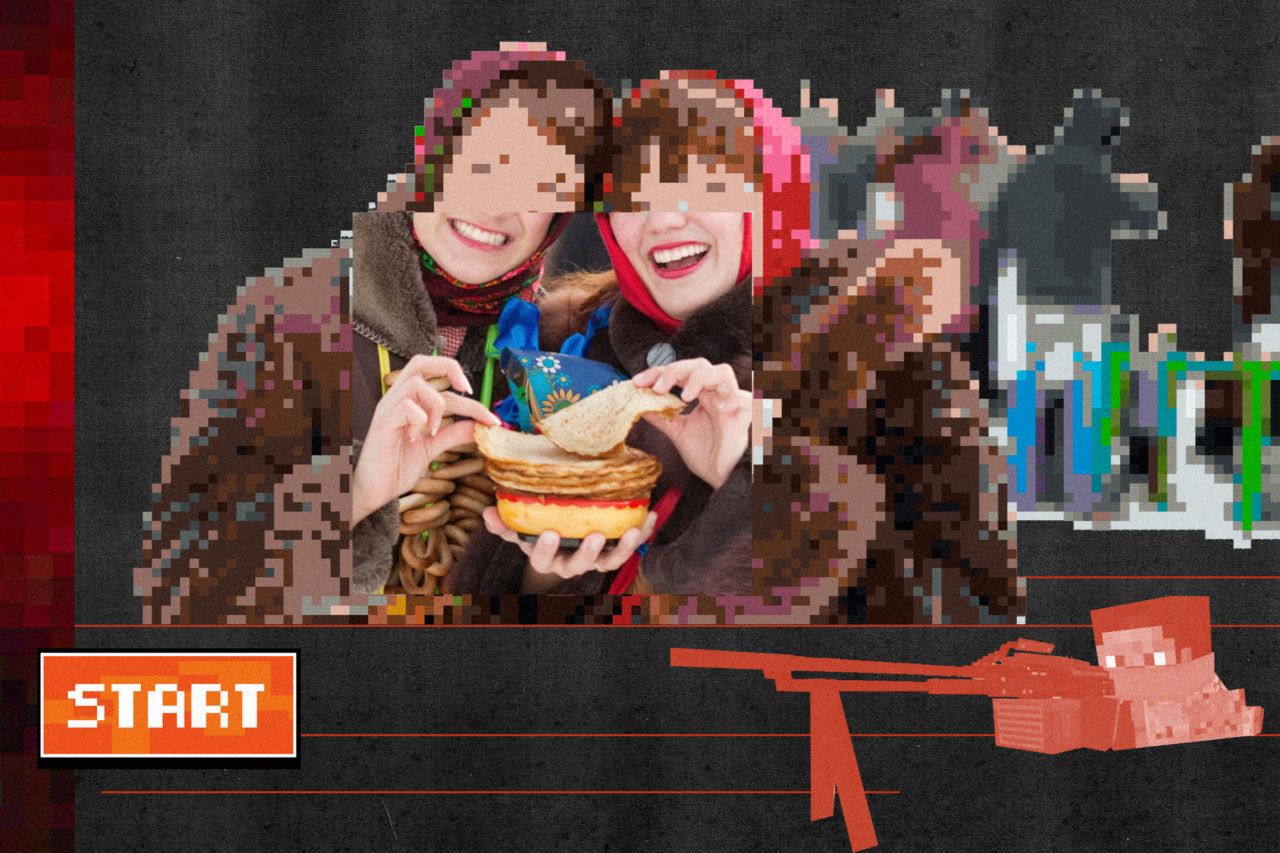 В марте 2024 года на Красной площади россияне отмечали Масленицу. Всю праздничную неделю возле Кремля пекли блины, играли в жмурки, проводили конкурсы. Провластная общественница Екатерина Мизулина в ярко-розовом костюме поздравляла столпившихся вокруг подростков, а пропагандист Отар Кушанашвили играл с гостями в перетягивание каната. Но гуляющие по центру Москвы ничего не заметили — все это происходило в онлайн-мире игры «Майнкрафт». Посетители управляли прямоугольными фигурками, Красная площадь состояла из крупных параллелепипедов, как и весь мир этой видеоигры, а транслировали праздник в VK известные игровые блогеры.
