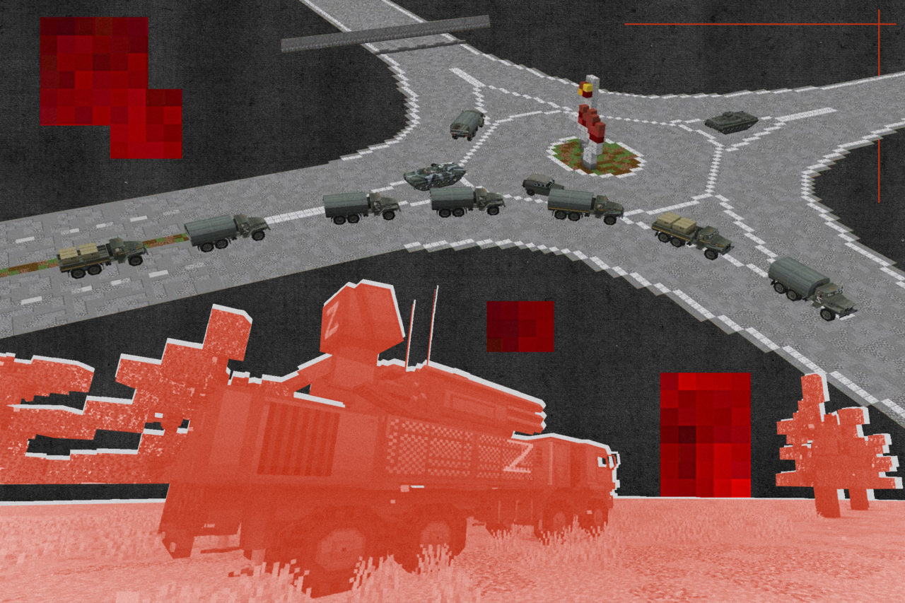 На Красной площади, построенной из пиксельных блоков, игроки в «Майнкрафт» празднуют Масленицу. В это время на виртуальных улицах Бучи гремят выстрелы. Другие игроки до мелочей воссоздали в игре штурм Бахмута: российские солдаты тренируются на стрельбищах, захватывают здания и допрашивают пленных. А их командир с прозвищем «Пригожин» выставляет участникам оценки за тренировки. Декорации для игровых баталий – разрушенные украинские города. Некоторые участники игры отправились на реальную войну и там испытали, работают ли игровые техники в настоящем бою.