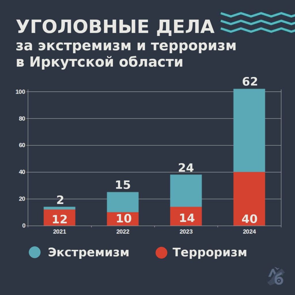 В 2024 году в Иркутской области завели в 3,5 раза больше уголовных дел по экстремистским и террористическим статьям, чем в предыдущем