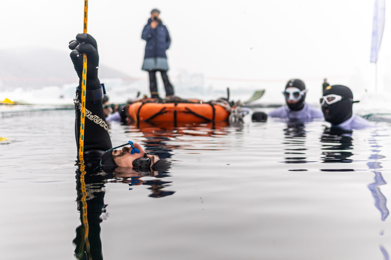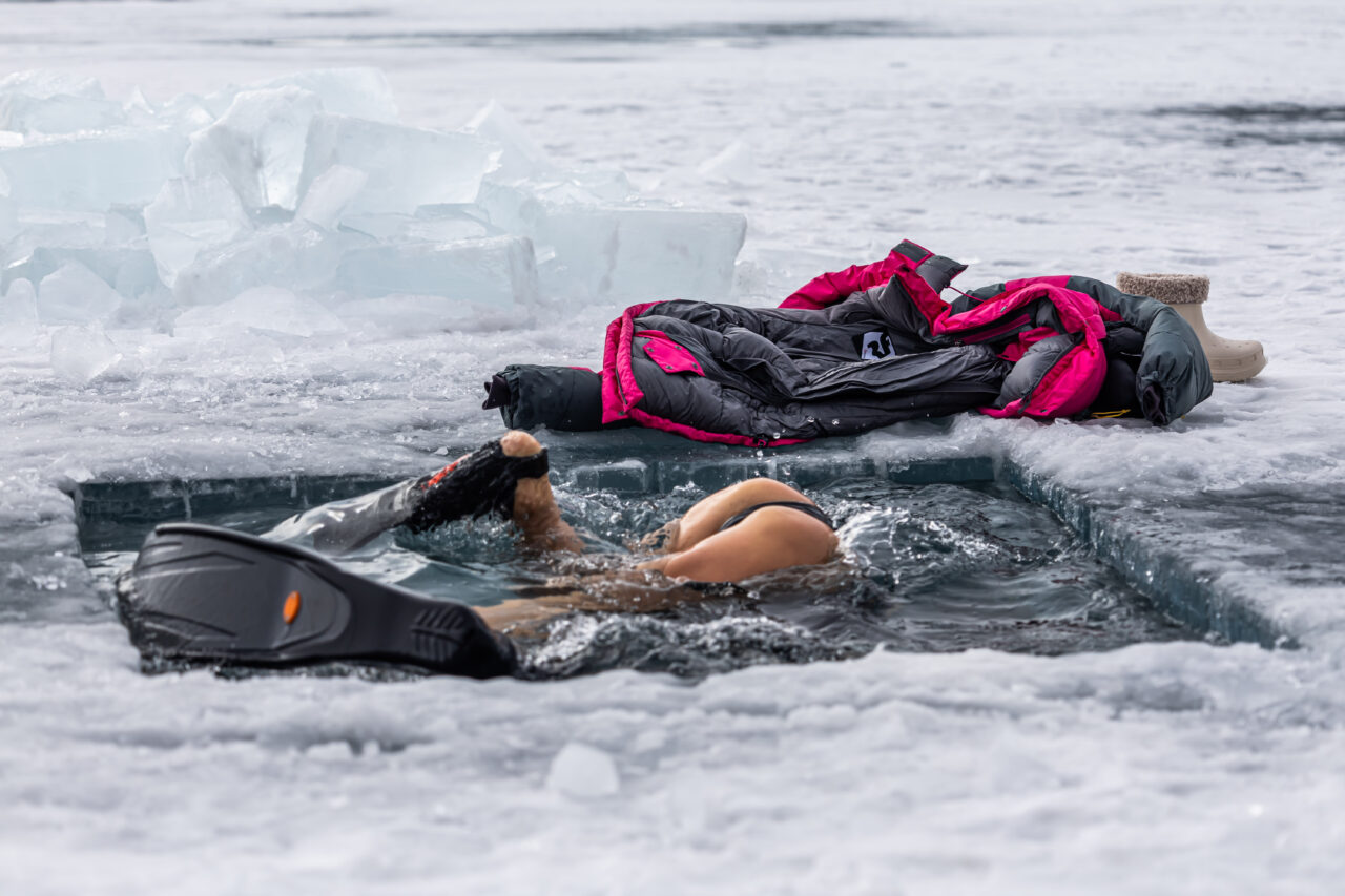 Во второй день фестиваля россиянка Екатерина Некрасова проплыла подо льдом озера 122 метра в длину. Спортсменка была без гидрокостюма, в обычном купальнике и ластах.