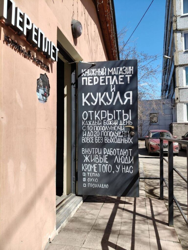 Если вам не безразлична судьба таких мест, как «Переплет», 26 апреля — хороший повод им помочь. Найдите независимый книжный на bookshopmap.ru, зайдите туда, купите книгу и скажите спасибо тем, кто продолжает создавать культурную среду в вашем городе.