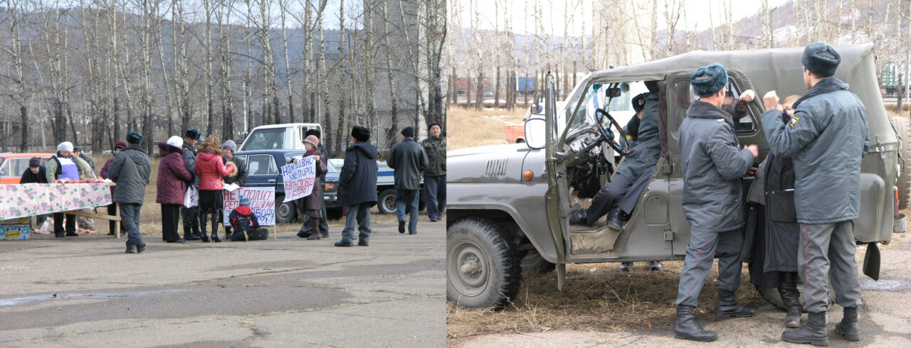 Администрация пыталась помешать провести сход граждан в Мясокомбинате. Накануне сотрудники мэрии разослали жителям письма о том, что сход — незаконное мероприятие и те, кто на него придут, будут задержаны. Люди всё равно собрались. На встречу позвали мэра Петровск-Забайкальского Александра Таранова. Когда жители поняли, что на собрании нет ни одного представителя городской администрации, сами пошли к мэрии. От посёлка до центра города — восемь километров.