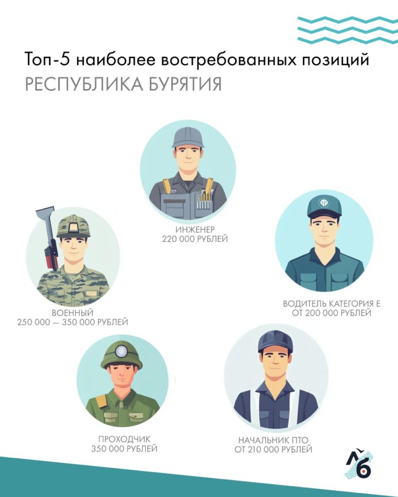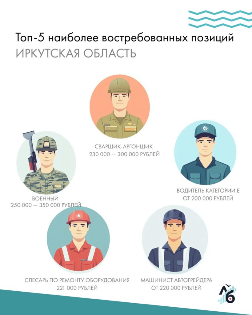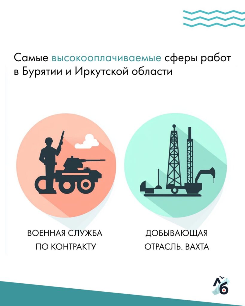 Самые высокооплачиваемые работы в двух регионах — в добывающей отрасли на вахтовом графике. Например, участковому геологу предлагают зарплату в 350 тысяч рублей за вахту в Бодайбо Иркутской области. На втором месте по высокооплачиваемым работам — служба по контракту. В карточках вакансий указана оплата от 250 до 350 тысяч рублей в месяц. Также требуется лаборант клинико-спектрального анализа, врач УЗИ в поселок Богатырь и обработчик рыбы и морепродуктов в Закаменск. Всем им предлагают зарплату от 150 до 300 тысяч рублей.