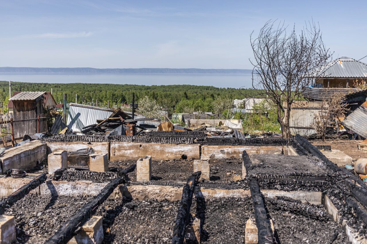 Сейчас вместо двух домов на участке — только обгоревший фундамент и никаких следов вписки. Среди прочего оставшегося хлама — сложенные беспорядочной кипой тетрадки за 8-й и 9-е классы.