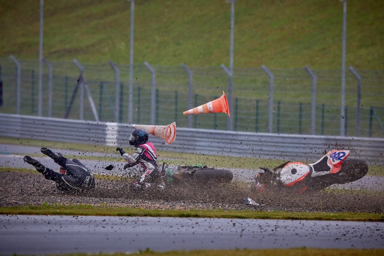 Вообще физическая выносливость — ключевой фактор, который влияет на результаты в гонке. Мотоцикл на высоких скоростях требует постоянного контроля тела: мышцы рук, ног, спины работают почти без остановки. Это также влияет и на безопасность, на ментальную выносливость, на концентрацию. Если ты устал, твой мозг не может соображать так быстро, как раньше, и давать тебе команды, которые нужно выполнить.