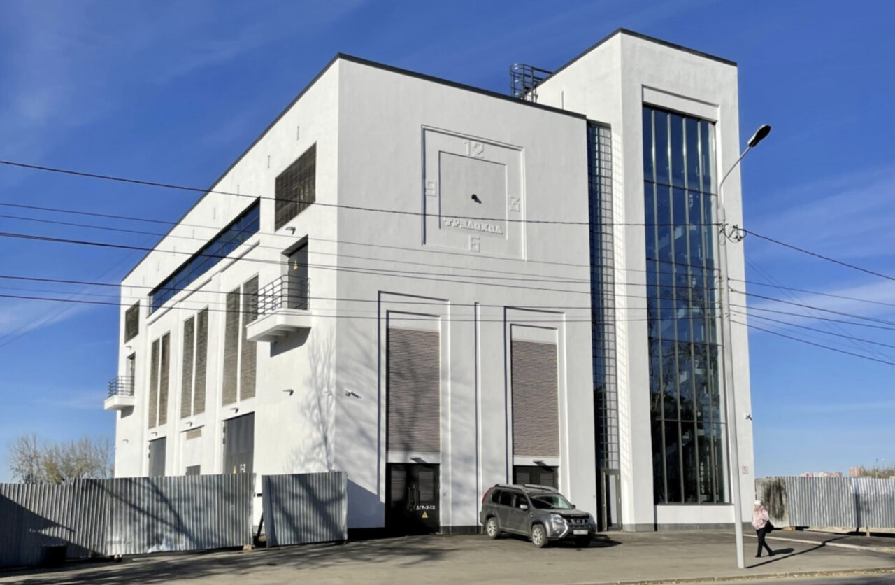 Первое здание — подстанция «Цесовская», которую возвели ближе к улице Сурикова и открыли в конце 2023 года. Это белое строение обладает чертами, которые характерны для советского конструктивизма 1920-х: строгие металлические ограждения балконов, похожие на корабельные, ясный силуэт и плоские стены, и даже квадратный шрифт для надписи «Трудход» на часовом циферблате одного из фасадов. Это отсылка к артели «Трудоход», которая в XIX веке занималась производством часов и фасадами. Почему для проекта выбрали именно ее, авторы не объясняют.