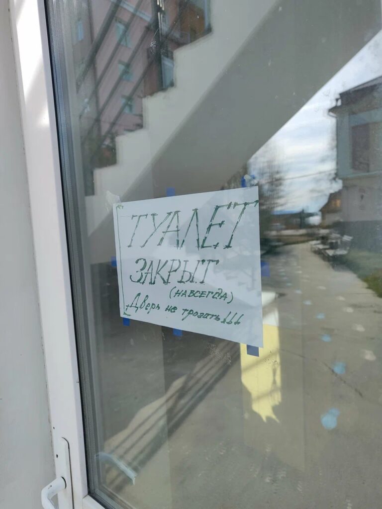 Иркутянка написала, что всегда пользовалась туалетом за гостиницей «Маяк», но в воскресенье она увидела там объявление «Туалета нет». Местная жительница направила туристку к зданию администрации, где на двери висело объявление с адресами туалетов.